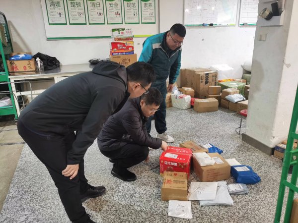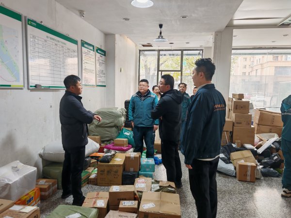 現場,領導與辛勤奮戰在投遞一線的分揀、攬投人員進行親切交談。詢問了解投遞作業組織安排、人員配備、段道、業務量等情況,詳細了解旺季生產期間員工的生活與工作,細致了解一線員工旺季生產期間的工作和生活情況。