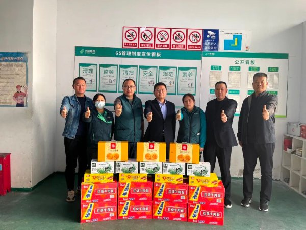 “雙11”旺季生產期間,為進一步關心關愛生產一線員工,鄭州市郵政分公司領導班子成員在張世俊總經理帶領下,分赴攬投部等一線生產單位,為郵車司機、調度員、客服人員、攬投員送上了方便面、火腿腸、面包、牛奶等慰問品,以溫暖凝聚人心,以關愛匯聚力量,激發旺季生產新動力。