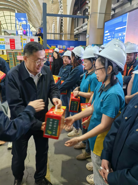 2024 年11月4日,正值雙十一旺季生產第二階段,市分公司黨委書記、總經理李柏平率隊前往郵區中心王港處理場地,為奮戰在生產一線的員工送去溫暖與關懷。