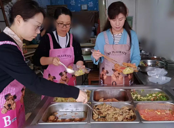 當攬投員風塵仆仆返回單位,工會慰問組已在食堂準備好午餐。她們戴上圍裙,熟練地拿起餐盒和勺子,變身為配餐員,細心地為每一份餐盒裝飯和菜,紅燒肉圓、醇香雞腿、清炒時蔬、熱騰騰的米飯……每一份餐都分量十足、營養(yǎng)均衡,承載著滿滿的關懷。