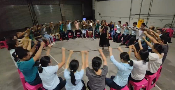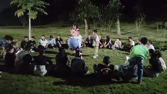 此次心理健康疏導活動把理論內容穿插在戶外游戲中開展。在熱身游戲“桃花朵朵開”中完成分組,以小組的方式進行“穿越呼啦圈”“軌道運輸”“不倒森林”小組賽,以眾人揮舞而成的“動力圈”完成團隊任務。
