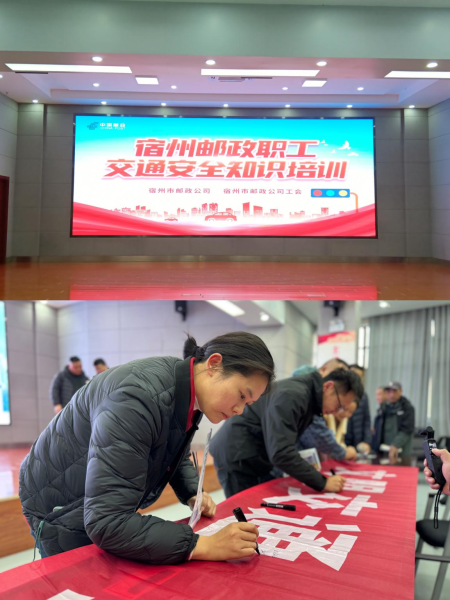 培訓會上,宣傳民警先為參會人員播放了交通安全警示教育宣傳片。然后,針對宿州郵政職業特點,講解了在投遞員在路上的交通安全出行應注意事項。期間,民警還結合近年發生的宿州發生的典型交通事故案例,采取以案促改的形式,深入淺出的將交通安全意識、常見駕駛陋習等方面發生事故的原因進行詳細講解,讓全市郵政員工意識到酒駕、醉駕、不戴頭盔等交通違法行為所帶來的危害性,并提醒大家要始終做文明交通的踐行者。在培訓講座結束之時,宿州郵政工會宣讀了《郵政職工交通安全倡議書》,號召全體郵政員工注重自身安全,遵守交通規則。同時,參培員工現場簽訂了《道路交通安全承諾書》。 通過此次培訓,郵政員工對交通安全法律法規有了更加清晰的認識,更加深刻理解了交通安全的重要性。大家在培訓后紛紛表示,在今后的工作和生活中,要時刻繃緊安全弦、樹牢安全觀,自覺遵守交通安全法規,做文明人、行文明路、開文明車,樹立郵政隊伍良好形象。