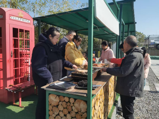 在和煦的陽光下和一片歡聲笑語中,大家分工協作,有的清洗食材、有的擺放水果,有的烤制肉串,有的拍照留念,忙得不亦樂乎。不一會兒空氣中就飄散著美味佳肴的香味,大家一邊品嘗自己親手烤制的美食,一邊閑話家常。