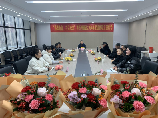 為進一步體現企業對退休職工的重視和關愛,切實增強退休職工的榮譽感和組織歸屬感,12月26日,湘西州郵政工會組織開展“感恩有你 共話未來”2024度退休員工歡送會,州分公司黨委委員、副總經理、工會主席劉春華,工會副主席楊杰,州本部新退休職工及工會相關同志參加此次座談會。