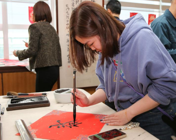 此外,老師們還現(xiàn)場(chǎng)傳授書寫技巧,鼓勵(lì)有興趣的員工親自嘗試,體驗(yàn)書寫的樂趣。許多員工躍躍欲試,紛紛握起毛筆,感受那份源于古人的智慧與文化沉淀。看著自己親手寫下的字跡,每個(gè)人都沉浸在了傳統(tǒng)與創(chuàng)新交織的快樂之中,進(jìn)一步加深了對(duì)春節(jié)傳統(tǒng)文化的理解。