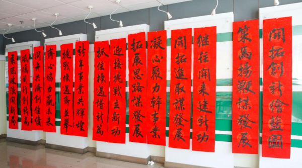 活動(dòng)現(xiàn)場(chǎng),墨香四溢,紅紙鋪展,特邀的書法老師們揮毫潑墨,一筆一劃間盡顯神韻,將滿載著吉祥寓意的春聯(lián)贈(zèng)予在場(chǎng)的每一位員工。這些春聯(lián)不僅字體遒勁有力,內(nèi)容更是寓意深遠(yuǎn),既有對(duì)過去一年辛勤付出的肯定,也有對(duì)新一年美好生活的熱切期盼。