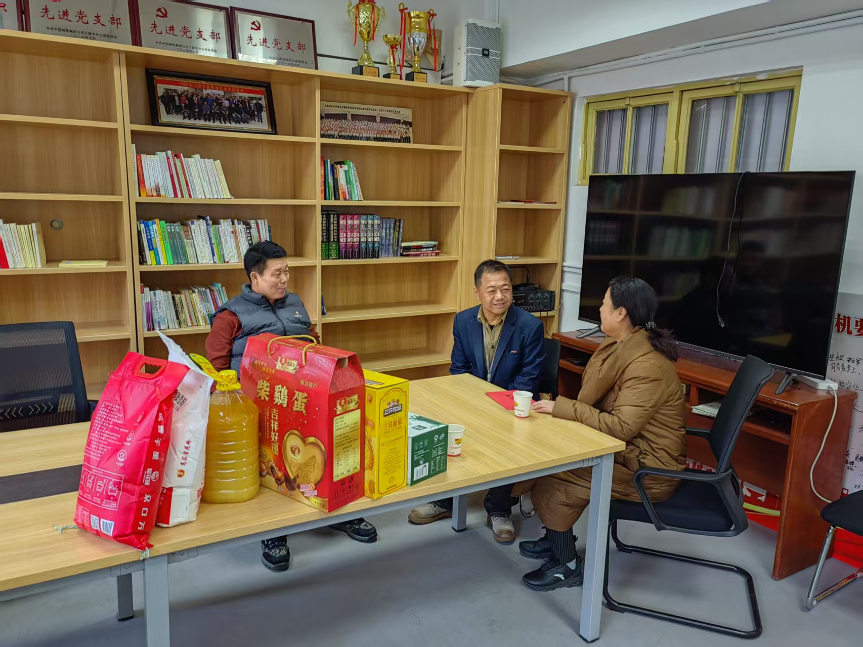 2025年一月起,天津市郵政工會大力開展春節送溫暖活動,先后向基層工會劃撥專項慰問款68萬元,惠及職工近6000名。各級黨政領導、工會主席帶隊,深入一線,對勞模先進、困難職工、投遞員、長途運輸司機及節日期間堅守一線的職工開展慰問,送去水果、牛奶、雞蛋等慰問品,幫助解決職工群眾在生產生活中遇到的急難愁盼問題,切實把黨組織和企業的關懷送到廣大職工的心坎上,引導廣大職工群眾聽黨話、跟黨走。此外,市郵政工在春節前及時審核撥付204人次互助互濟資金17.25萬元、72次關愛幫扶補助7.7萬元,將補助第一時間送到需要幫助的職工,讓每一位職工都能感受 “家” 的關懷 !