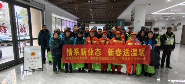 在新春佳節到來之際,為弘揚春節傳統文化,增強戶外勞動者對傳統文化的認同感和歸屬感,營造溫馨和諧的社會氛圍,1月20日下午,宿州市郵管局、市郵政工會、市鐵塔公司在淮海路郵政支局工會驛站聯合開展“情系新業態 新春送溫暖”活動。此次活動旨在通過實際行動,向辛勤工作在一線的戶外勞動者表達敬意和關懷。在活動現場,相關負責人與交警、快遞小哥、環衛工人、外賣員等戶外勞動者進行了親切的交流。他們詳細了解了這些勞動者們的工作和生活情況,傾聽他們的心聲和需求。同時,現場還發放了保暖手套、圍巾、暖寶寶、春聯等慰問品,為他們送上了誠摯的關懷和慰問。這些慰問品不僅傳遞了節日的祝福,也體現了社會各界對這些勞動者辛勤付出的認可和尊重。