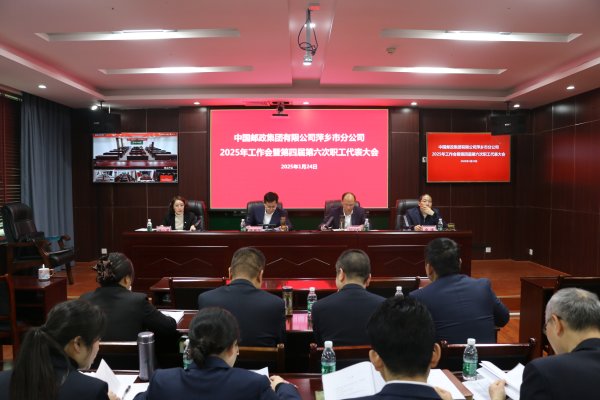1月24日,中國郵政集團有限公司萍鄉市分公司召開2025年工作會議暨第四屆第六次職工代表大會。會議傳達了2025年集團公司、省分公司工作會議精神。與會職工代表聽取了市分公司黨委書記、總經理陳愛民所作的工作報告,審議表決通過了關于工作報告的決議。