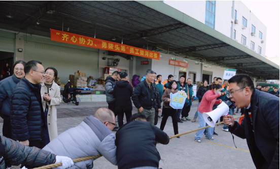 日前,湖州市郵政工會舉辦的“齊心協力、勇拔頭籌”迎新年員工拔河比賽在熱烈歡呼聲中拉開序幕,此次活動吸引了來自湖州市分公司各部門的15支隊伍,共170余人參賽。湖州市分公司領導班子成員親臨現場為員工加油助威,現場人頭攢動,氣氛高漲。