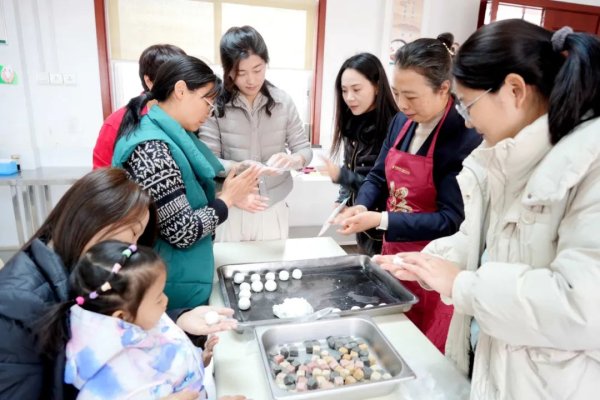 揉面團、放餡料、團形狀……一套動作一氣呵成如行云流水,片刻間,一個個圓潤飽滿的湯圓呈現在大家面前。大家一邊熟練地包著湯圓,一邊分享著元宵趣事,現場充滿了歡聲笑語,氣氛溫馨融洽。