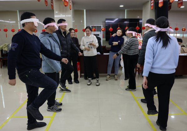 員工們有的戴上喜慶的頭飾,化身為“吉祥寶寶”,在游戲中奔跑跳躍。在金蛇戲珠中,大家加快了步伐,一會左拐,一會右拐,以箭一樣的速度穿梭。在好運門里,大家三五相邀,凹造型擺pose。