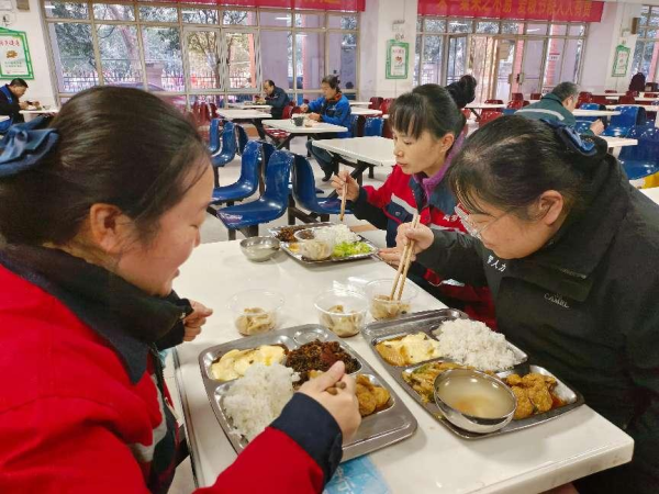 在大小食堂,各部門領(lǐng)導(dǎo)和工會干事們一邊為員工盛取餃子,一邊親切的與員工交流,關(guān)心他們的身體健康,感謝大家在春旺攻堅戰(zhàn)中的辛苦付出,鼓勵大家再接再勵直到奪取春旺完勝。