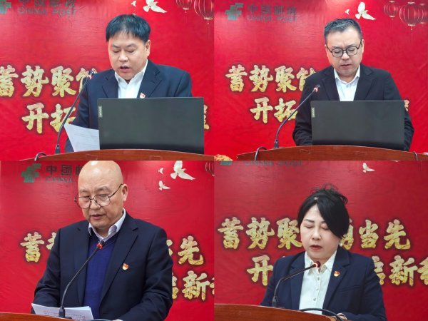 黨委書記王偉作了題為《堅定戰略自信 勇于擔當作為 深化改革創新 多領域實現咸陽郵政高質量發展》工作報告,以“六個緊盯”全面回顧了2024年主要工作成效,并深入分析存在問題與發展形勢,安排2025年重點工作任務。2025年是“十四五”規劃收官之年,也是“十五五”規劃的謀劃之年。按照集團“全面構建十大體系,落實八項重點工作”及省分公司“七個加快”發展要求,通過“六大行動”構建咸陽郵政高質量發展新格局。即實施攻堅行動,確保全年目標穩中提質;實施深耕行動,確保央企責任穩中有為;實施轉型行動,確保寄遞改革穩中求新;實施升級行動,確保管理治理穩中加固;實施引領行動,確保黨業融合穩中求進;實施共建行動,確保人文管理穩中向好。