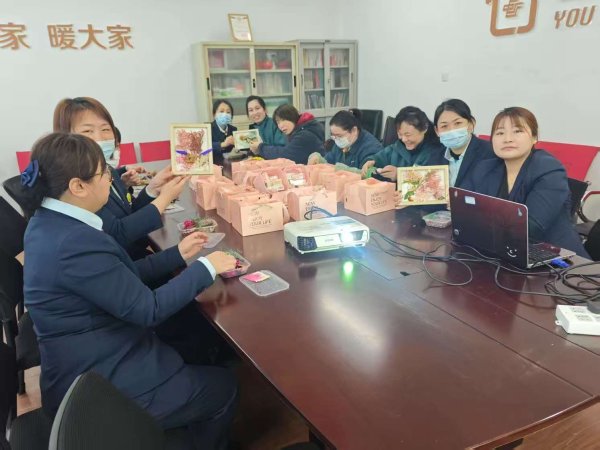 顧村支局職工小家內女職工們發揮巧思,認真制作精美的干花裝飾畫。每一個作品都飽含著對生活的熱愛與對節日的期待,歡聲笑語此起彼伏,共同慶祝屬于自己的節日。