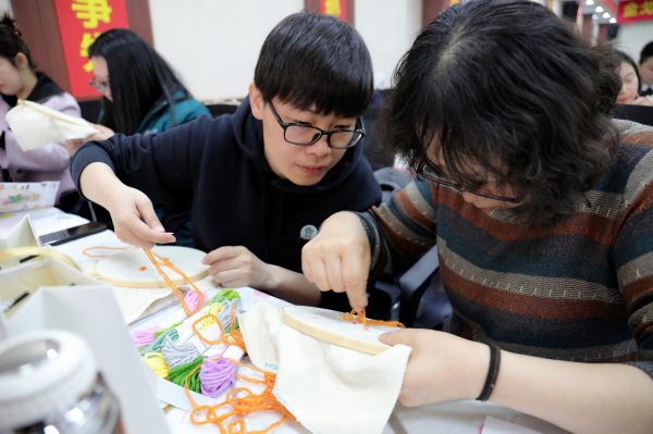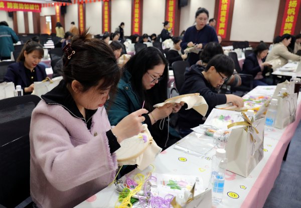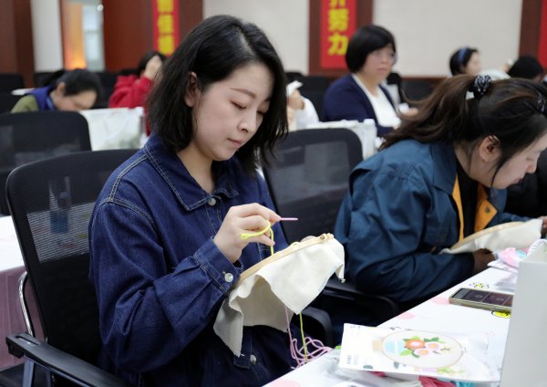 心理健康講座結束后,手工刺繡制作活動將現場氛圍推向高潮。活動現場,刺繡老師詳細講解了刺繡的基本針法和技巧,并親自示范。女職工們興趣盎然,紛紛拿起針線,認真地穿針引線,精心制作自己的刺繡作品。在一針一線中,女職工們充分發揮創造力和想象力,將簡單的絲線變成了一幅精美的圖案。大家相互交流、互相學習,分享著刺繡過程中的樂趣和心得,歡聲笑語回蕩在整個活動現場。