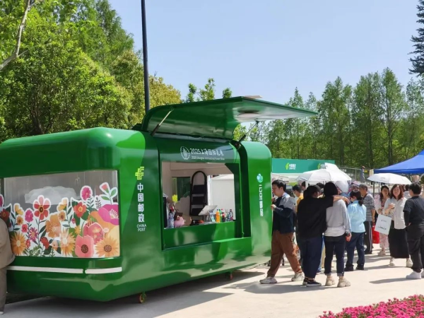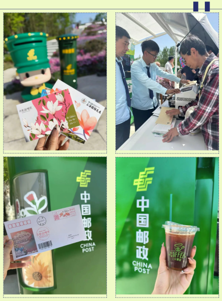 在錢家灘路(前灘公園巷段)限時步行街舉辦的前灘花集和早春非遺生活節期間,浦東郵政在新自然主義花廊旁特別設立了花展快閃郵局。為了慶祝此次花展,浦東郵政推出了限定版花展定制明信片和彩色郵資機戳,為本次花展增添了一份特別的記憶點。這一獨特的郵資機戳不僅是對本屆花展的美好祝福,也為廣大集郵愛好者提供了一次難得的收集機會?;ㄕ箍扉W郵局特制了個性化郵差寶貝郵筒,造型獨特,充滿趣味,與現場的自助冰箱貼打印機、有聲明信片打印機一同成為活動現場的一大亮點,游客紛紛駐足打卡??扉W郵局引入云朵主題郵局的云南咖啡,進行現場制作,讓來往行人駐足品味的同時,感受到來自遠方的溫暖問候?,F場還提供了豐富的明信片系列和郵政文創產品。