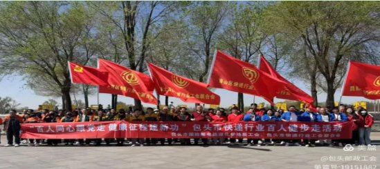 為,大力倡導健康文明生活方式,展現(xiàn)郵政職工的精神風貌,4月25日上午,包頭市郵政工會組織職工參加由市國防郵電能源化學地質(zhì)工會主辦,市快遞行業(yè)工會聯(lián)合會、各旗縣區(qū)快遞行業(yè)工會聯(lián)合會承辦的“百人同心跟黨走 健康征程建新功”百人健步走活動。