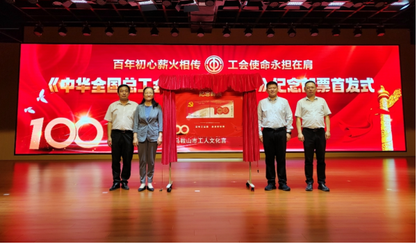 5月1日上午,中國郵政集團有限公司馬鞍山市分公司在市工人文化宮舉行《中華全國總工會成立一百周年》紀念郵票首發儀式。該活動由中國郵政集團有限公司馬鞍山市分公司與馬鞍山市總工會主辦,馬鞍山市集郵協會、馬鞍山市工人文化宮承辦。馬鞍山市人大常委副主任毛善群、馬鞍山市工人文化宮主任汪峻峰等出席活動。首先由市公司副總經理趙鴻志致辭、市公司市場部主任艾勇宣讀發行公告,與會領導共同為《中華全國總工會成立一百周年》紀念郵票揭幕。 隨后嘉賓還參觀了“總工會成立一百周年”主題集郵展覽,展出5部郵集共20框,在場人員認真欣賞,紛紛表示對郵票的獨特魅力所折服。現場還設置了主題郵票、郵品銷售區,并提供蓋戳服務。 首發活動的舉辦,不僅為集郵愛好者提供了珍貴的藏品,也讓更多人通過小小的郵票,了解中華全國總工會的百年奮斗歷程和輝煌成就。