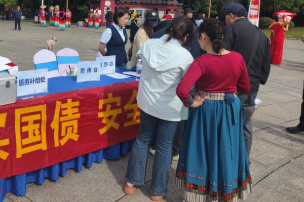 活動當天,來自市區、青陽縣及百惠舞蹈學校的19支隊伍、300余名廣場舞愛好者齊聚一堂,參賽隊員們身著種類多樣的服裝,伴隨多種經典曲目翩然起舞,既有傳統秧歌的靈動歡快,也有現代健身操的活力動感,以翩躚舞姿展現健康風采,引得現場市民紛紛鼓掌喝彩。在豐富群眾文化生活的同時,活動還聚焦惠民服務,將金融知識普及融入展演全流程。現場設置“國債知識宣講專區”,工作人員通過發放國債知識、理財知識宣傳手冊,講解剖析案例,向市民普及國債的安全性與普惠性,解析“國家理財工具”的購買方式及注意事項。市民員紛紛表示這次活動既欣賞了“舞藝”,又學到了保護養老錢的本領,受益良多。