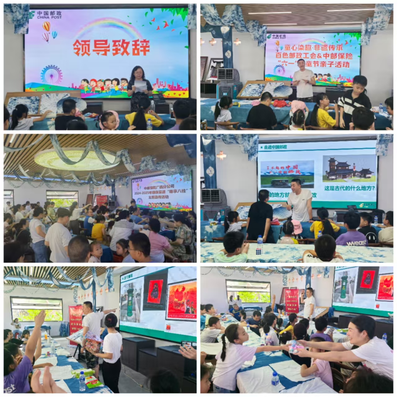 活動(dòng)現(xiàn)場(chǎng),首先由市公司工會(huì)黎健副主席代表公司領(lǐng)導(dǎo)做致辭,感謝全體職工對(duì)企業(yè)發(fā)展的貢獻(xiàn),向一直以來(lái)關(guān)注和支持企業(yè)的家屬們表示衷心的感謝,并向所有參加活動(dòng)的小朋友們送上節(jié)日的祝福。在趣味知識(shí)問(wèn)答環(huán)節(jié),氣氛非常熱烈,屏幕上展示著郵政發(fā)展史等一系列的圖片,小朋友們積極舉手回答,眼神中滿是求知的渴望。答對(duì)問(wèn)題后,拿到小獎(jiǎng)品的他們,臉上洋溢著自豪的笑容;而扎染體驗(yàn)區(qū)更是熱鬧非凡。孩子們?cè)诶蠋煹闹笇?dǎo)下,認(rèn)真地將白布進(jìn)行折疊、捆綁,放入染料池中浸染。當(dāng)原本潔白的布料在手中變幻出獨(dú)特的藍(lán)白圖案時(shí),他們眼中閃爍著驚喜與興奮。清洗、晾曬,每一步都充滿期待:投壺游戲區(qū)也傳來(lái)陣陣歡聲笑語(yǔ)。小朋友們手持箭矢,專注瞄準(zhǔn),嘗試著將箭投入壺中。有的一擊即中,興奮得歡呼雀躍;有的雖未成功,卻也不氣餒,繼續(xù)挑戰(zhàn)。