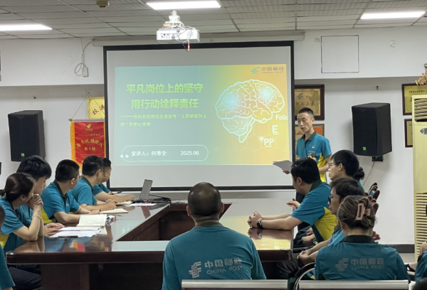 本次活動(dòng)邀請(qǐng)本單位“重慶五一勞動(dòng)獎(jiǎng)?wù)隆薄爸貞c市渝中區(qū)高層次人才”獲得者何壽全作為本次宣講的主講人。宣講會(huì)上,何壽全結(jié)合自身工作經(jīng)歷,用質(zhì)樸的語言、真摯的情感分享了他在平凡崗位上的奮斗故事。自2007年加入郵政以來,何壽全收寄郵件超300萬件,投遞郵件超162萬件,行經(jīng)郵路超40萬公里,服務(wù)客戶超9000戶,十余年零投訴。面對(duì)腰傷病痛始終堅(jiān)持將責(zé)任扛在肩上,將使命放在心上,用實(shí)際行動(dòng)托舉起郵政的責(zé)任和擔(dān)當(dāng),生動(dòng)詮釋了“人民郵政為人民”的初心使命。