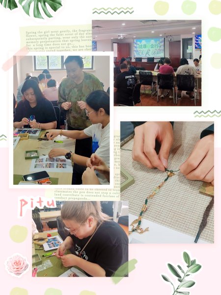 “繩子要拉緊,但也不能太用力,不然珠子會歪。”張老師手把手地教著一位新手,手指翻飛間,原本松散的彩繩漸漸有了手鏈的雛形。參與者們邊編邊說笑,把工作中的壓力都融進了彩繩里,專注的眼神里透著對傳統文化的好奇。