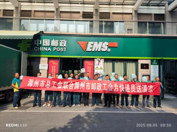 八月以來,滁州氣溫飆升超過35℃。烈日炎炎下,郵政一線快遞小哥們仍然堅守崗位,奔波在城市街頭,用專業的服務保障郵件正常攬收、轉運與派送。8月5日上午,滁州市總工會聯合滁州市郵政工會在戶外勞動者服務站點開展為快遞小哥送上清涼禮包慰問活動。 慰問組對一線郵政快遞小哥們在酷暑之下堅守崗位、愛崗敬業的精神給予充分肯定和贊揚,感謝他們在炎炎夏日的辛勤付出,并叮囑公司管理人員一定要做好員工的高溫防暑工作,確保全員安全度夏。